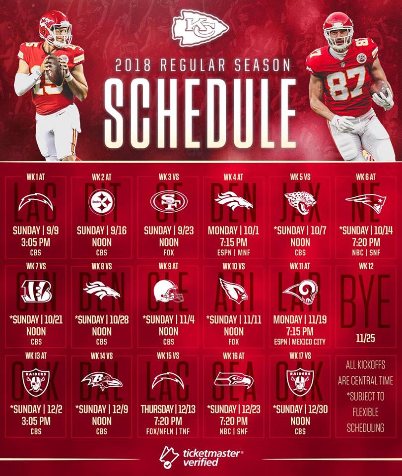 Visit espn to view the kansas city chiefs team schedule for the current and previous seasons kc chiefs. You can also find kansas city chiefs schedule information, price history and.