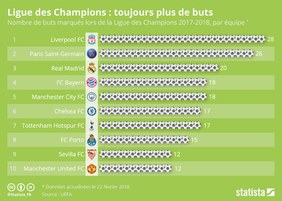 Voici une statistique présentant le nombre de participations en ligue de champions de l'uefa (union des associations européennes de football) de 1955 jusqu'en 2018, par club de football européen.